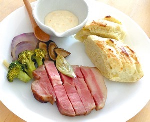 4 | ①の粗熱がとれたら食べやすく切り、②とあわせて盛り付ける。③をつけていただきます。 |